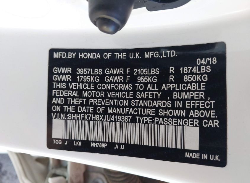 - VIN: SHHFK7H8XJU419367