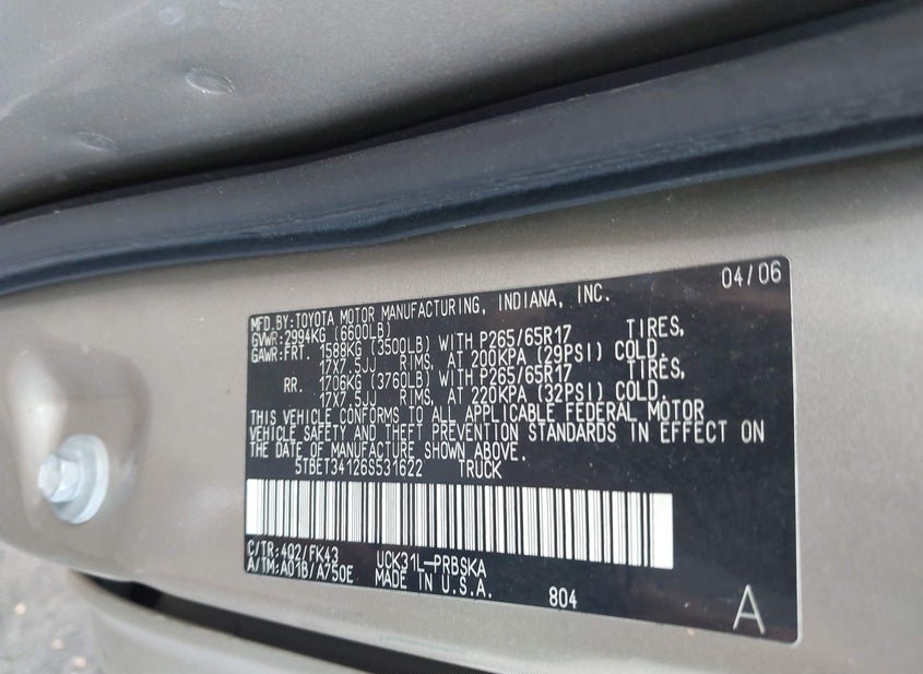 - VIN: 5TBET34126S531622