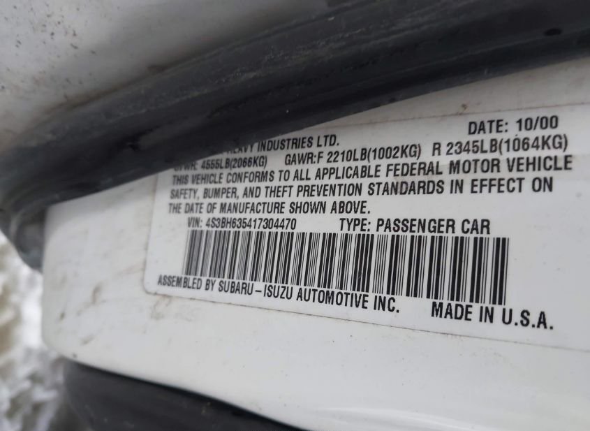 - Название лота: 2001 SUBARU LEGACY L