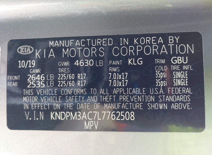 - VIN: KNDPM3AC7L7762508