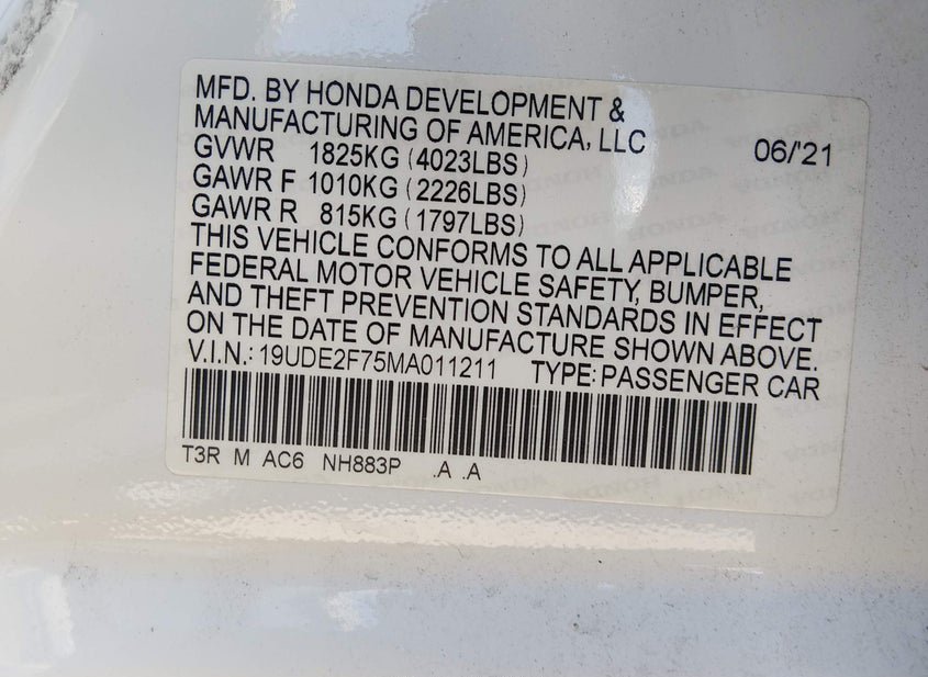 - VIN: 19UDE2F75MA011211