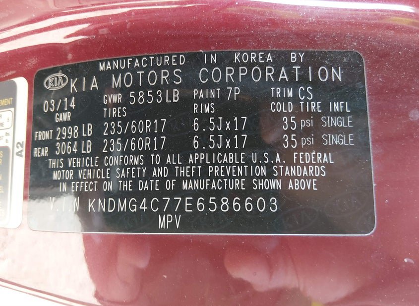 - VIN: KNDMG4C77E6586603