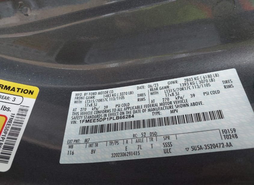 - VIN: 1FMEE5DP1PLB66284