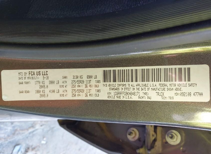 - VIN: 1C6RRFFG9KN646171