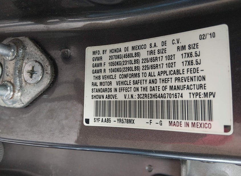 - VIN: 3CZRE3H54AG701674