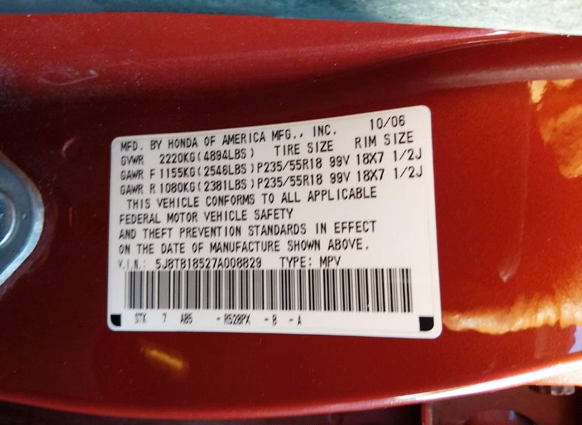 - VIN: 5J8TB18527A008829