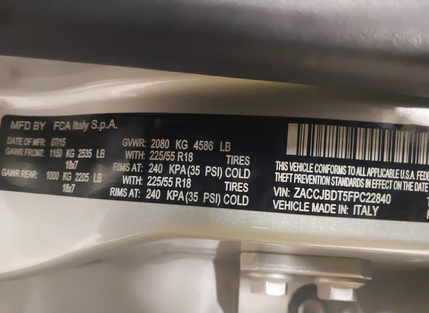 - VIN: ZACCJBDT5FPC22840