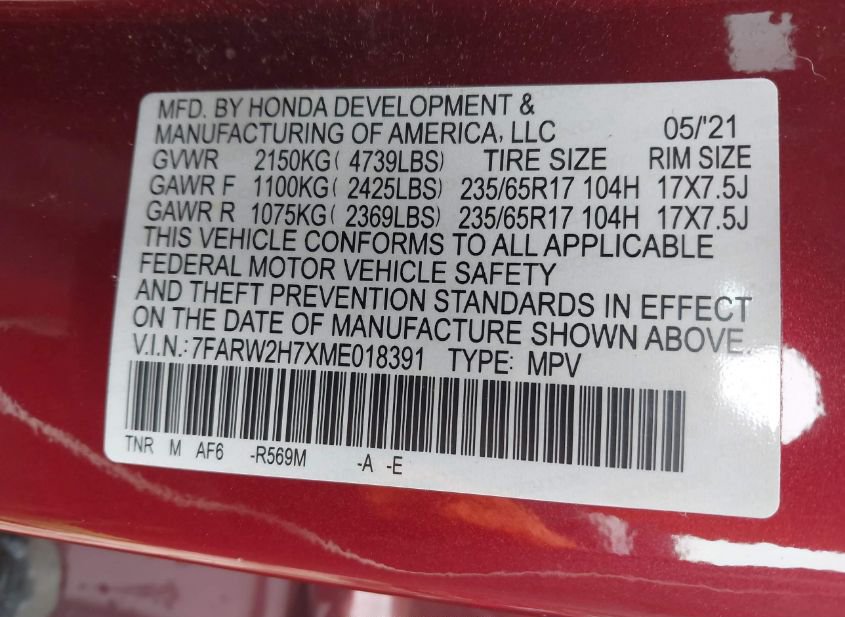 - Название лота: 2021 HONDA CR-V AWD SPECIAL EDITION