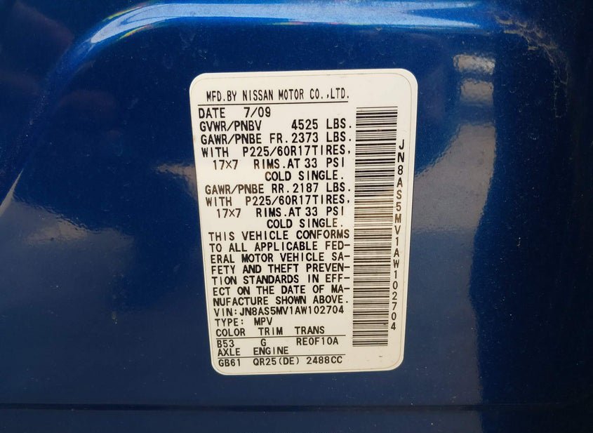 - VIN: JN8AS5MV1AW102704