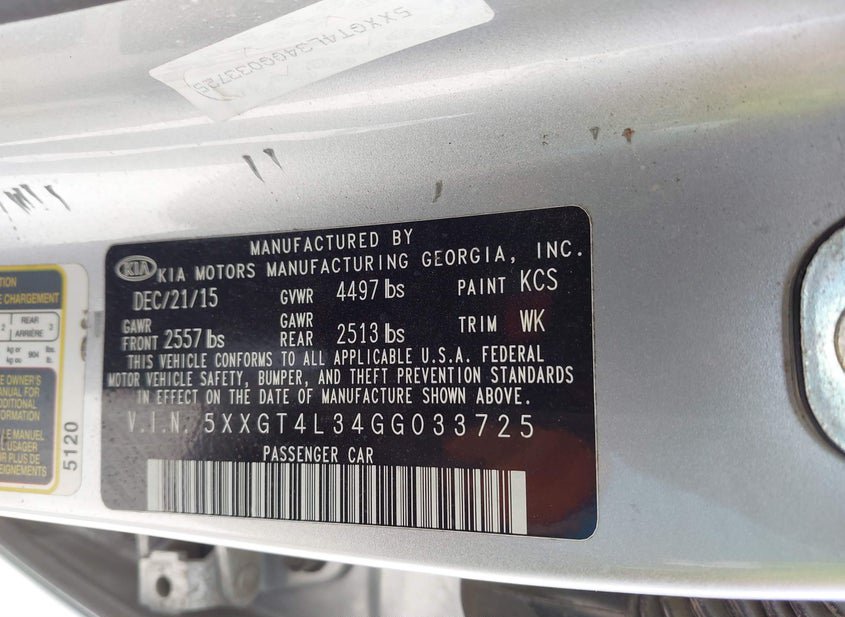 - VIN: 5XXGT4L34GG033725