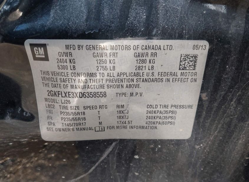 - VIN: 2GKFLXE3XD6358558