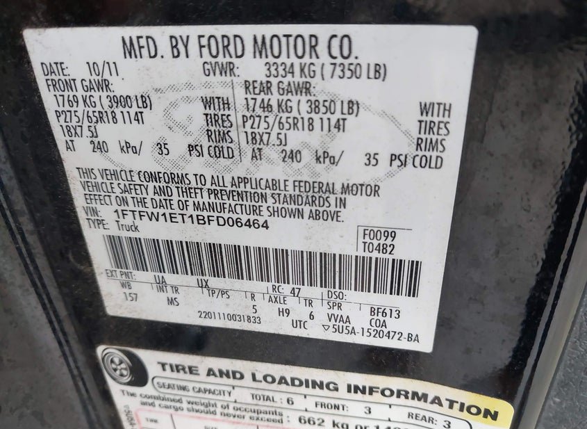- VIN: 1FTFW1ET1BFD06464