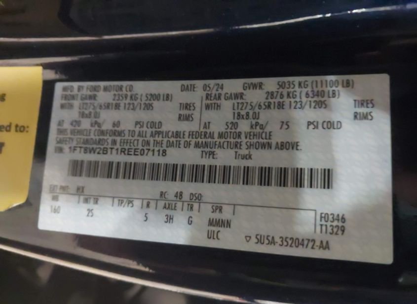 - VIN: 1FT8W2BT1REE07118