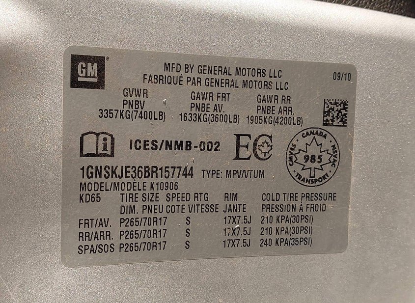 - VIN: 1GNSKJE36BR157744