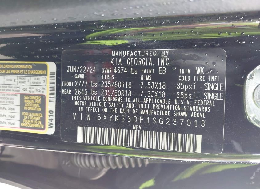 - VIN: 5XYK33DF1SG237013