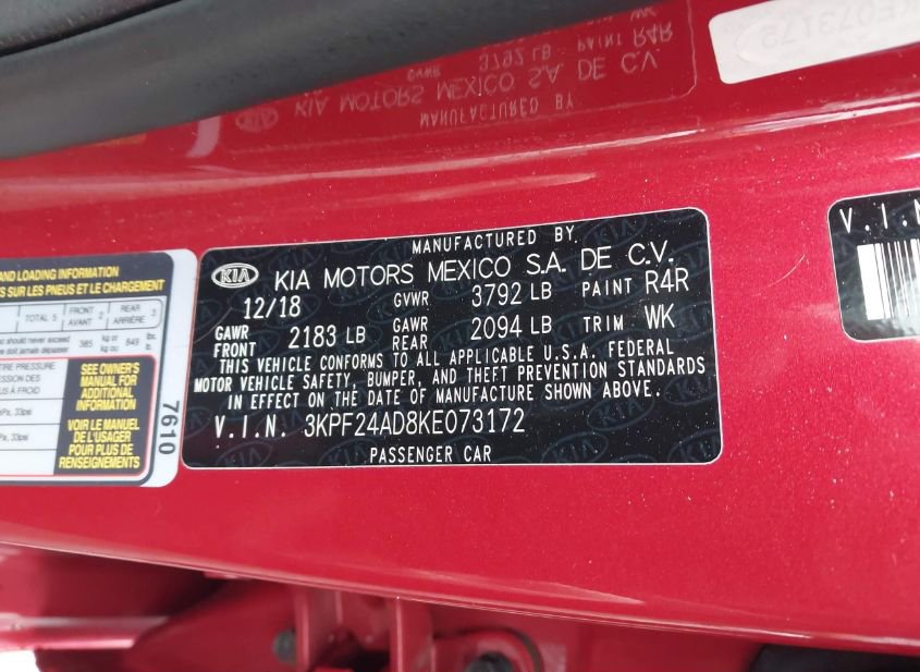 - VIN: 3KPF24AD8KE073172
