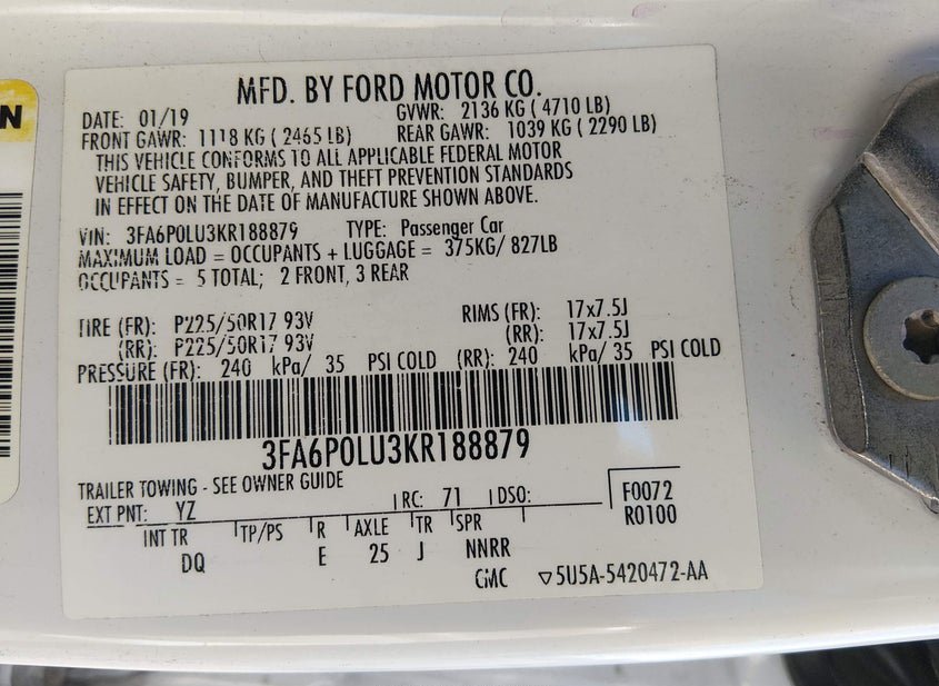 - VIN: 3FA6P0LU3KR188879