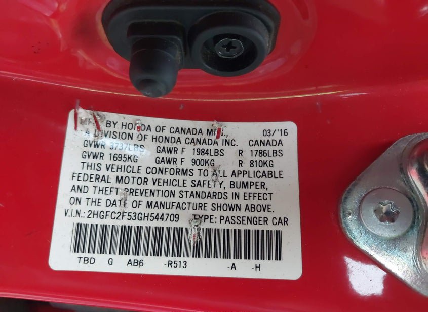 - VIN: 2HGFC2F53GH544709