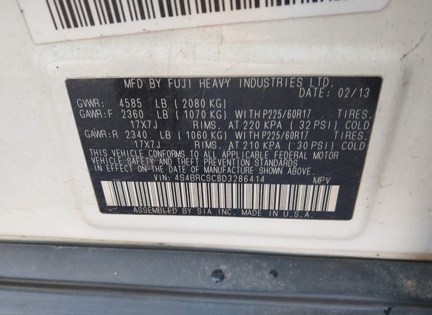 - VIN: 4S4BRCSC8D3286414