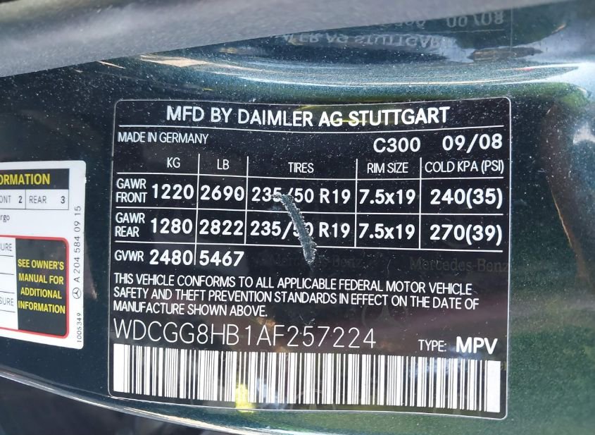 - VIN: WDCGG8HB1AF257224