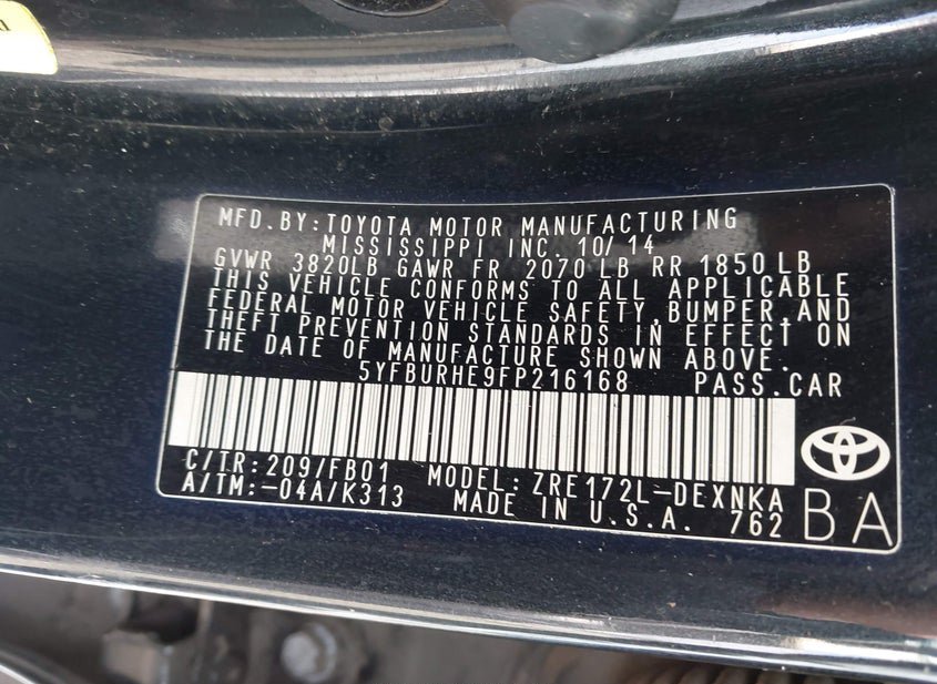 - VIN: 5YFBURHE9FP216168