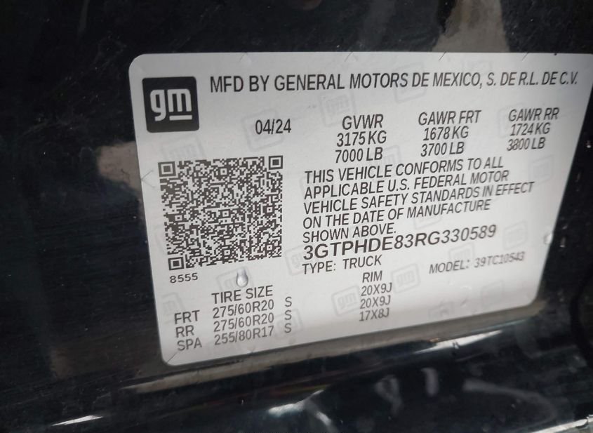 - VIN: 3GTPHDE83RG330589
