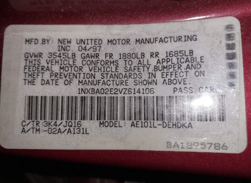 - VIN: 1NXBA02E2VZ614106