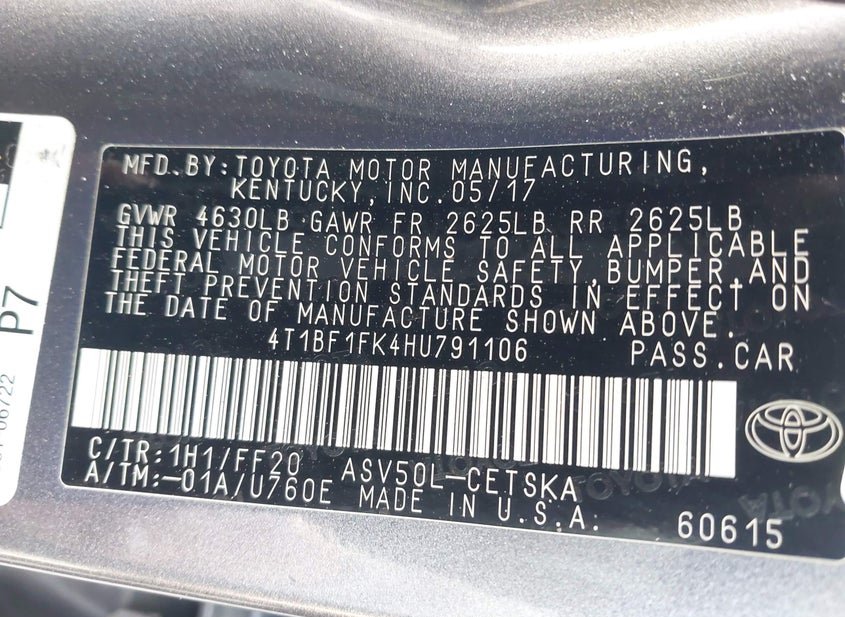 - VIN: 4T1BF1FK4HU791106