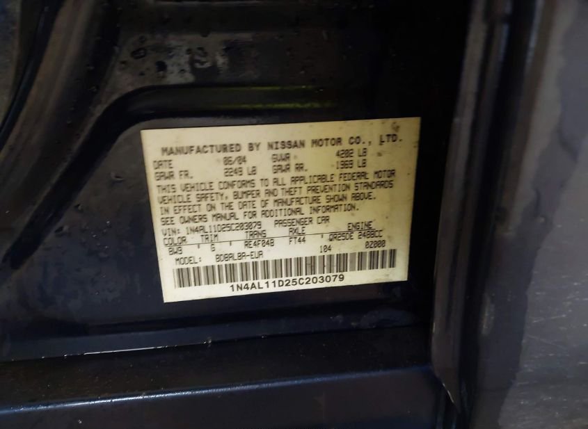 - Название лота: 2005 NISSAN ALTIMA 2.5 S