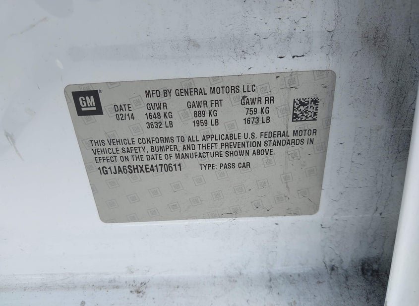 - VIN: 1G1JA6SHXE4170611