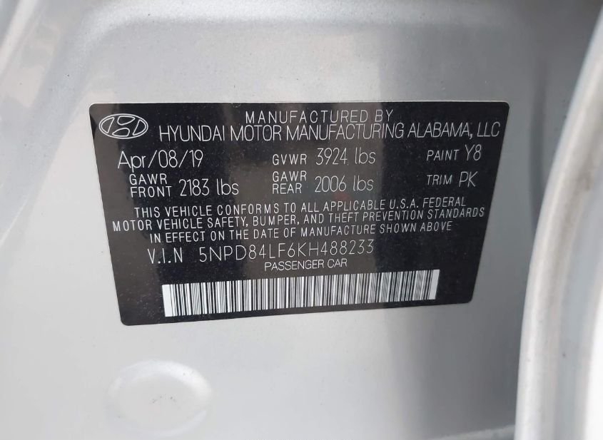 - VIN: 5NPD84LF6KH488233