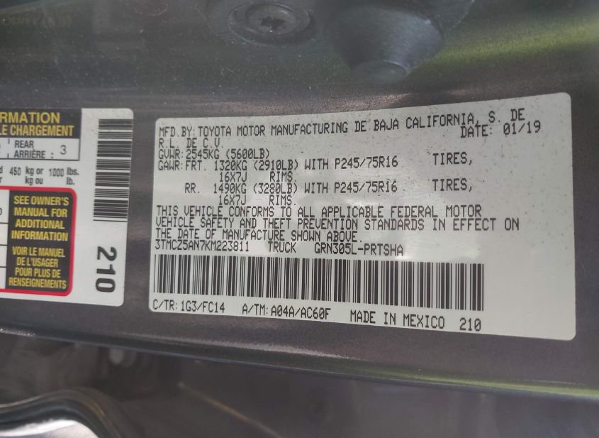 - VIN: 3TMCZ5AN7KM223811