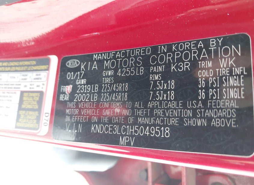- VIN: KNDCE3LC1H5049518