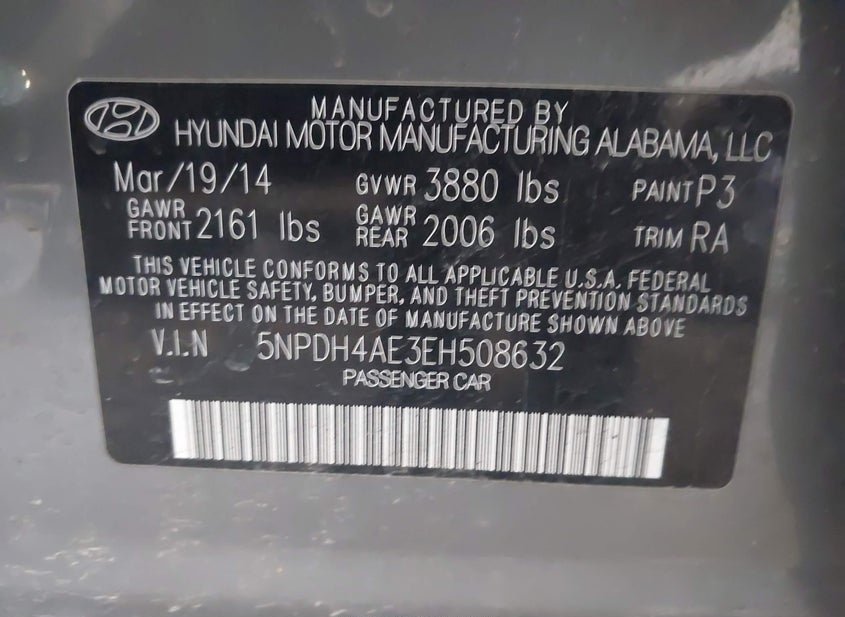 - VIN: 5NPDH4AE3EH508632