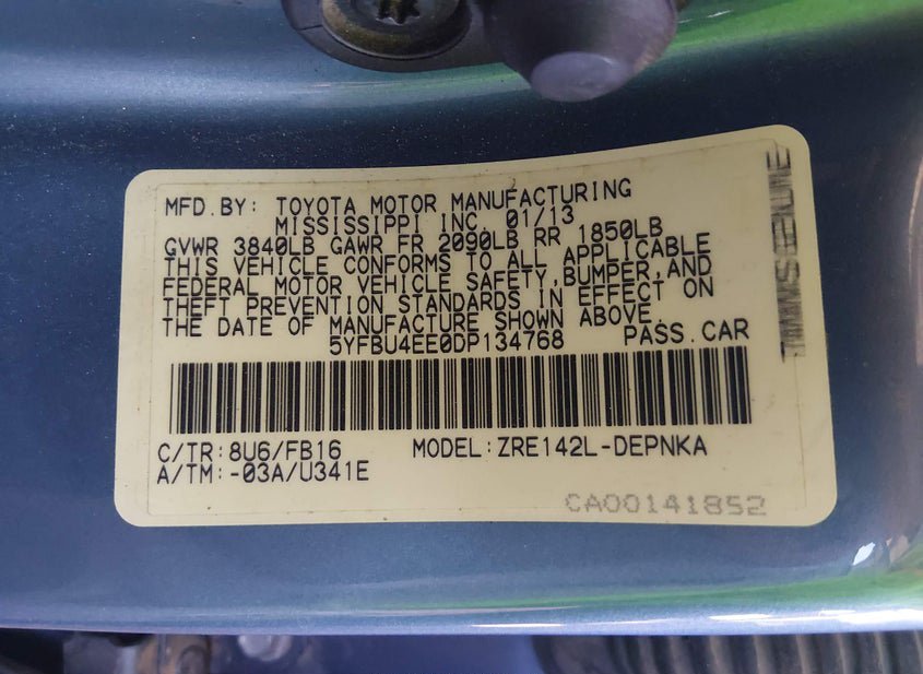 - VIN: 5YFBU4EE0DP134768