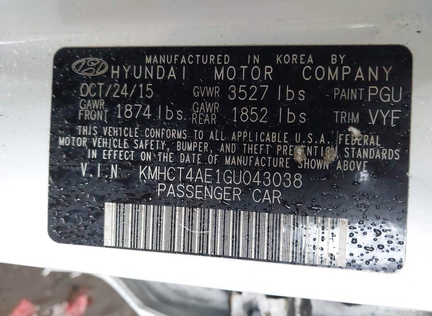 - VIN: KMHCT4AE1GU043038