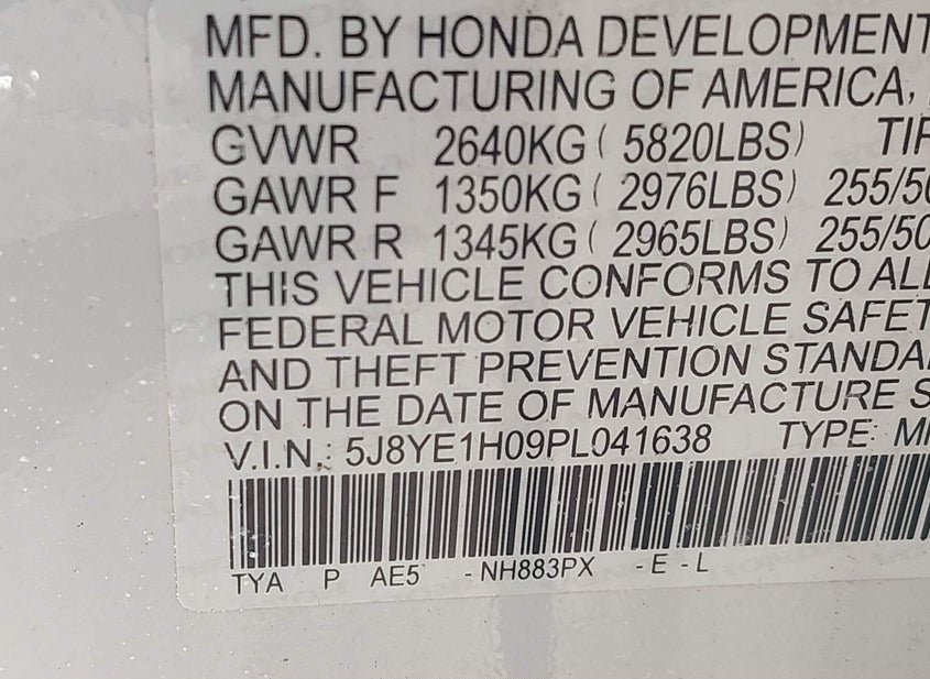 - VIN: 5J8YE1H09PL041638
