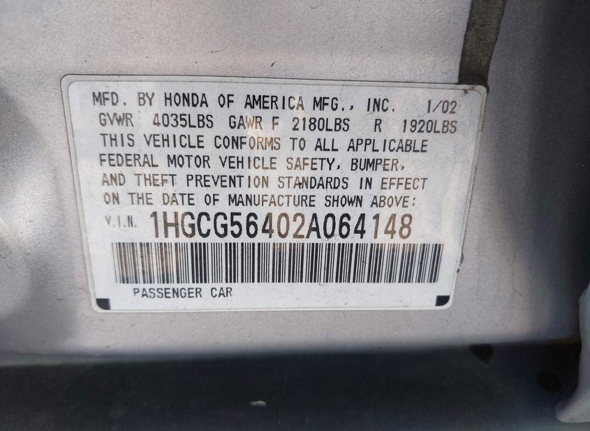 - VIN: 1HGCG56402A064148