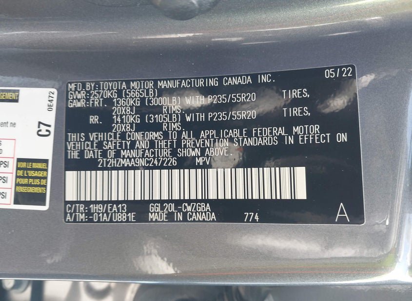 - VIN: 2T2HZMAA9NC247226