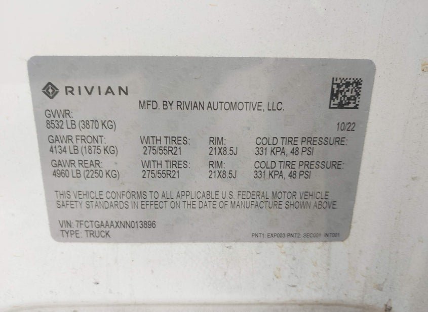 - Название лота: 2022 RIVIAN R1T ADVENTURE