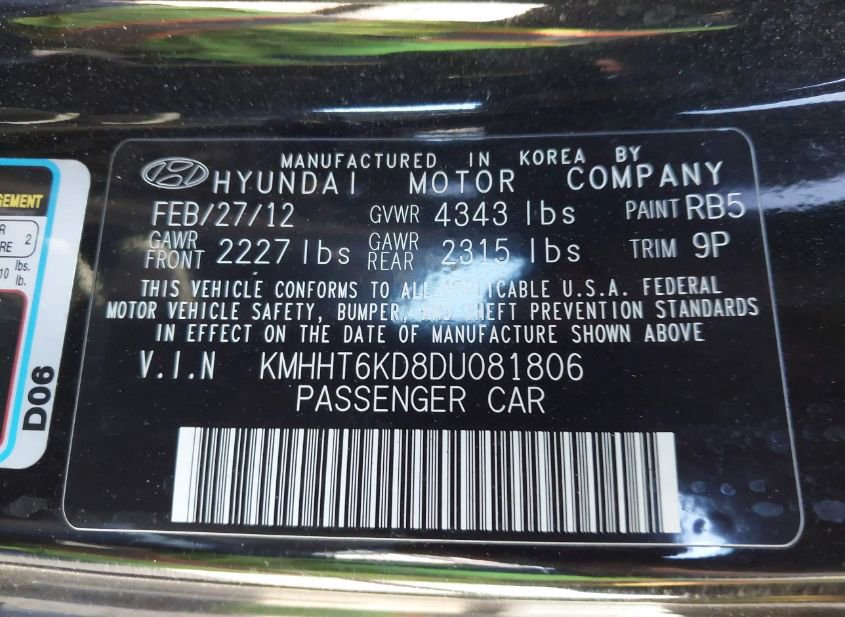 - VIN: KMHHT6KD8DU081806