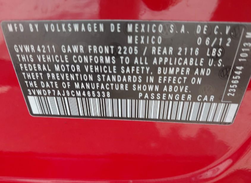 - VIN: 3VWDP7AJ9CM465338