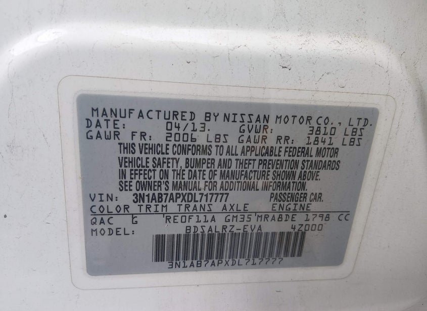 - VIN: 3N1AB7APXDL717777