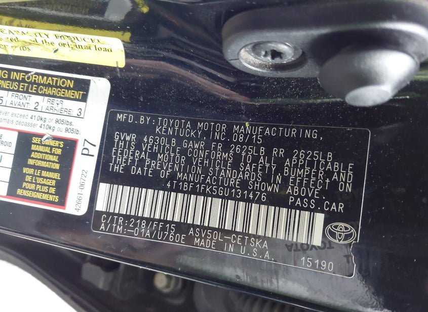 - VIN: 4T1BF1FK5GU131476