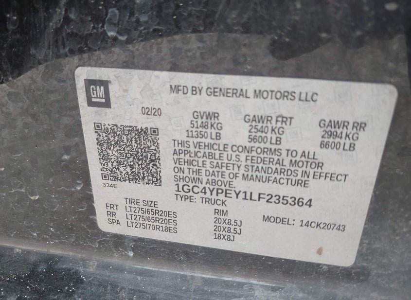 - VIN: 1GC4YPEY1LF235364
