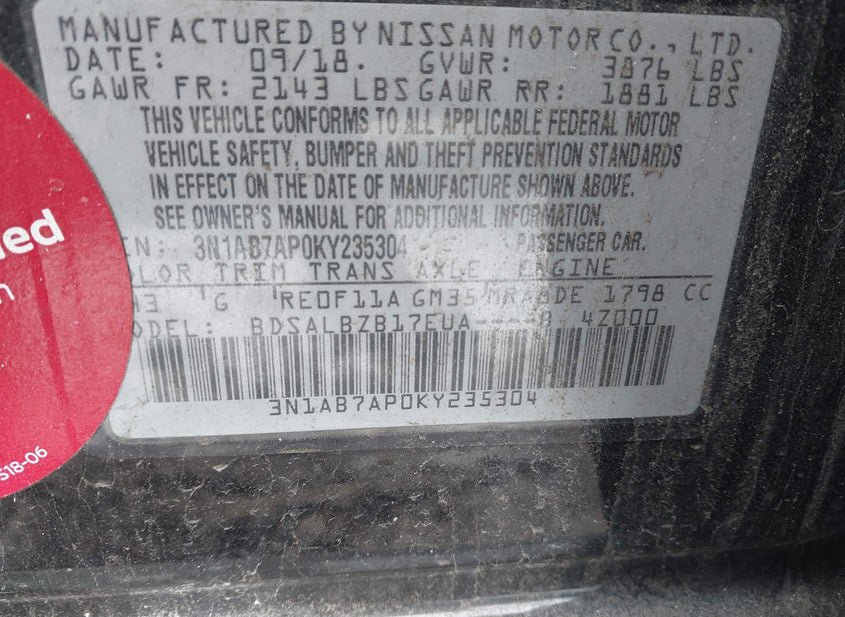 - VIN: 3N1AB7AP0KY235304