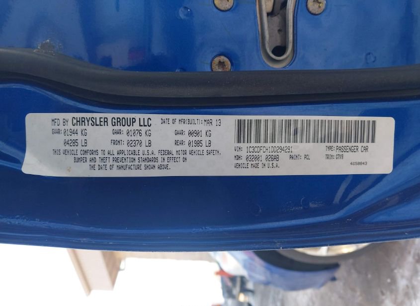- VIN: 1C3CDFCH1DD294291