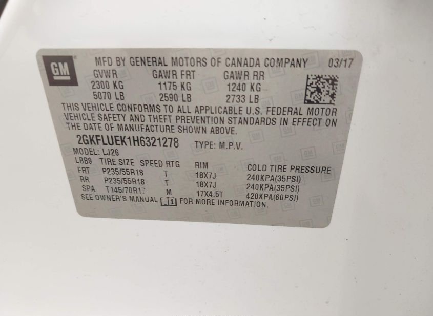 - VIN: 2GKFLUEK1H6321278