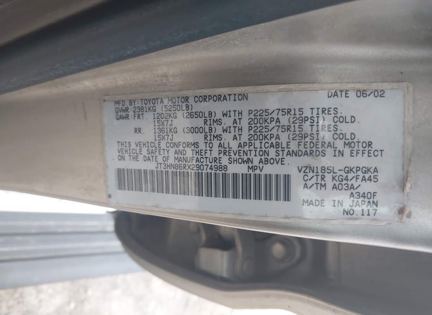 - VIN: JT3HN86RX29074988
