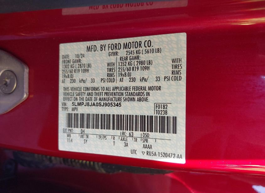 - VIN: 5LMPJ8JA0SJ905345